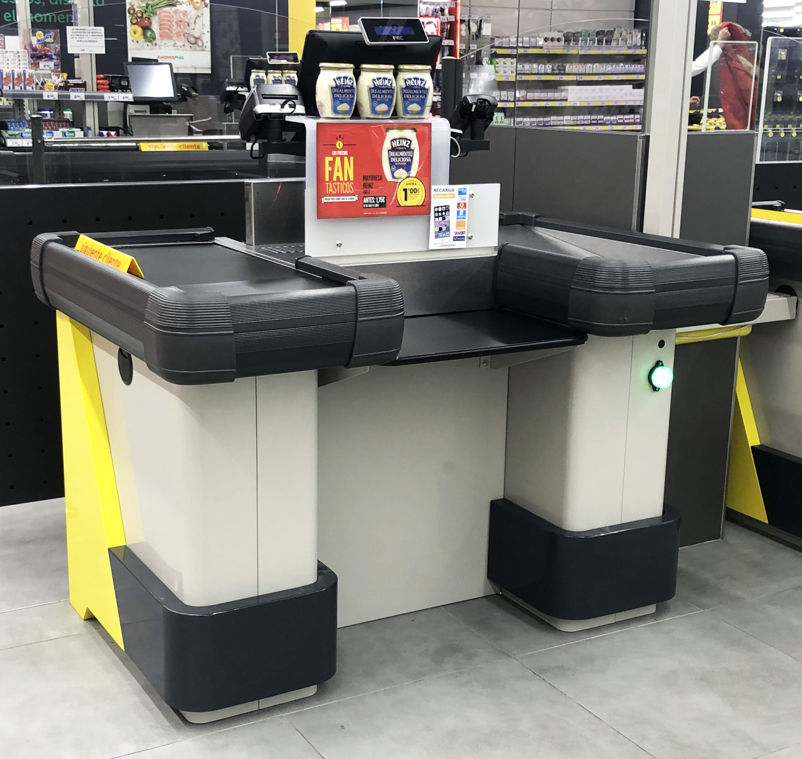 Muebles caja adaptados a todo tipo de superficies comerciales y sometidos a exhaustivos estudios de ergonomía para facilitar el proceso de cobro.