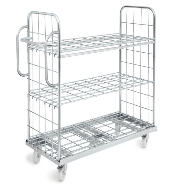 Diseñado para la preparación y organización de correo y paquetería. Su tamaño con distintos niveles y divisores convierten este carro en la solución más ágil y versátil del mercado en este sector.